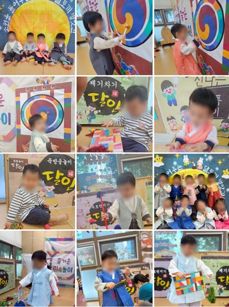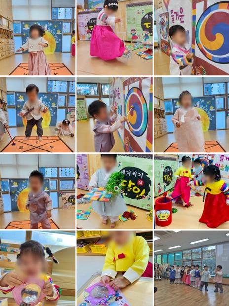 제기차기를 시도할 때 발을 들어 올리며 간신히 균형을 잡는 귀여운 모습, 죽방울놀이를 할 때는 나무 막대가 움직이는 걸 따라가며 주의 깊게 살피는 집중력을 발휘할 수 있었습니다. 투호 던지기, 콩주머니 던지기, 좌고 치기 등 민속 놀이를 통해 새로운 경험을 쌓고, 웃음 가득한 추억을 만들 수 있었던 소중한 시간이었습니다. 별하반 친구들은 판교복지관에 방문하여 할머니, 할아버지께 추석 인사를 드리며 송편을 나누어 드리며 멋지게 준비한 노래 선물도 들려드렸답니다.????